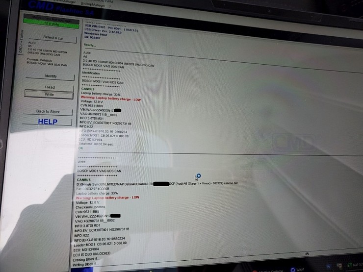 다음 리맵된 데이터를 주입 합니다. 본 차량 데이터는 적당한 선으로 수정하여 현행 50 TDI와 출력상 큰 차이가 없는 데이터이며, 다만 전반적인 응답성 및 리밋은 리맵으로 개선/해제되어 주입됩니다.