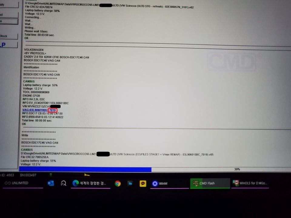 위 작업이 완료되고 나면 위와 같이 7819 버전으로 변경 됩니다. 차량의 토크가 향상됨으로 인한 변속 이질감을 완화시키기 위해 TCU 리맵도 함께 진행 합니다. 그리고 나서 차량 출력에 대한 데이터를 주입합니다.