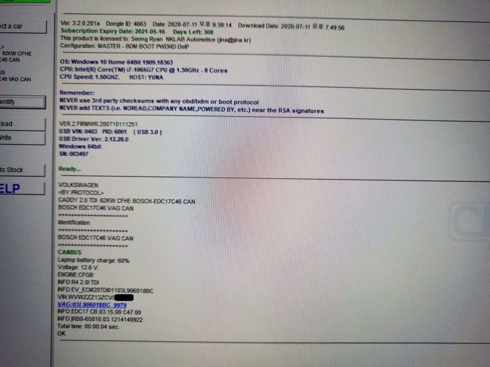우선 차량 ECU 버전을 확인 합니다. 9979번으로 23R7 배기관련 리콜이 진행된 차량 입니다. 최근에 9980 버전으로 업데이트가 되긴 했습니다만, 어차피 맵은 이 버전으로 진행하지 않습니다.