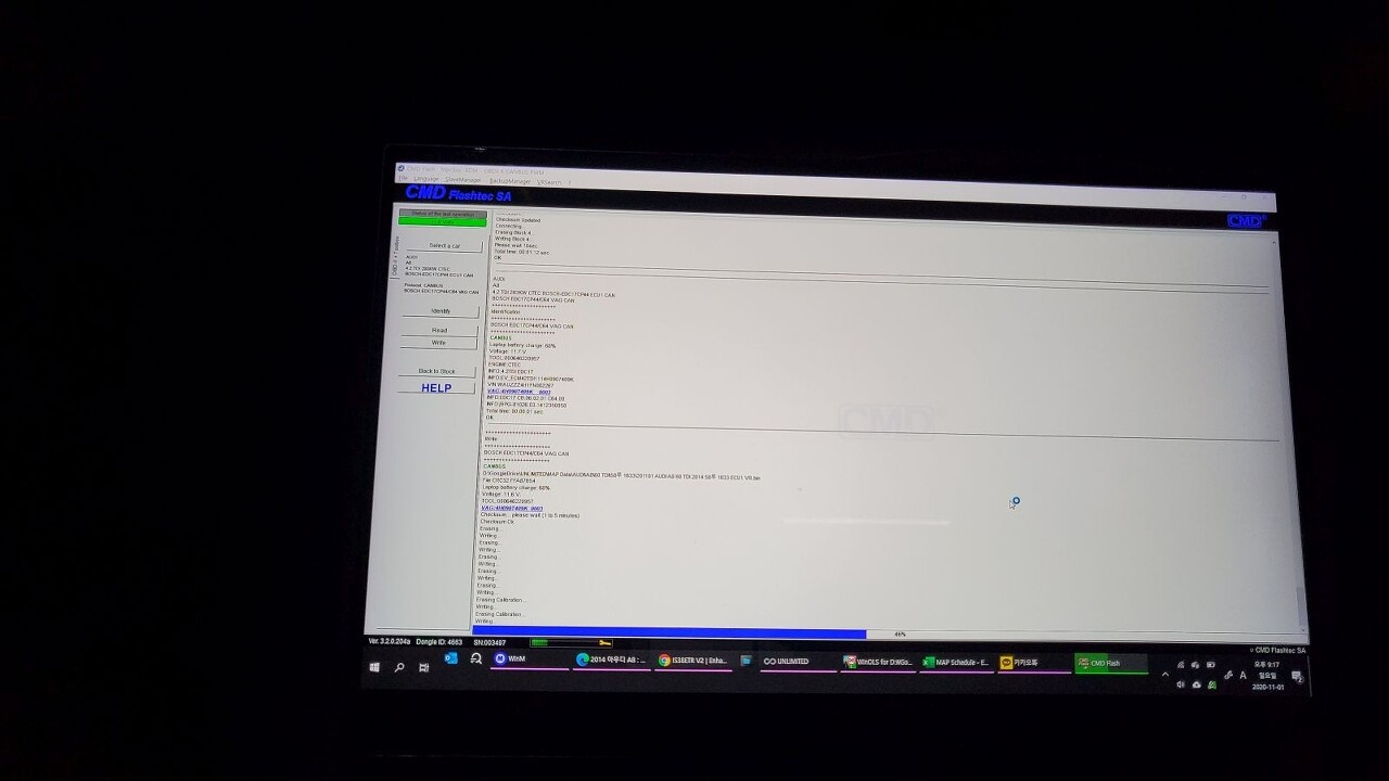 순정 데이터를 추출하고 리맵 후 ECU 주입 과정을 진행합니다. 기존 4.2 엔진이 적용된 차량은 ECU 두개에 모두 리맵을 해야만 합니다.