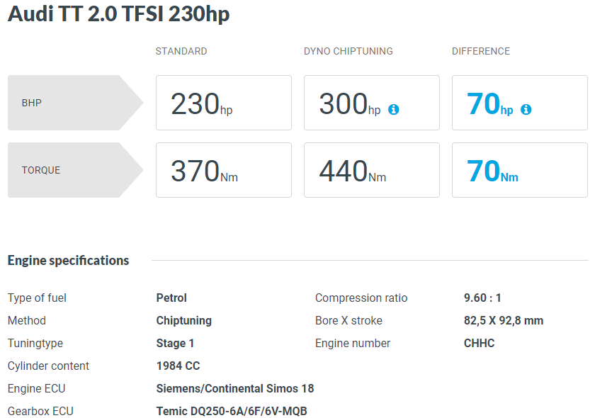 국내 출시 모델은 기본 제원상 220마력에 36토크 입니다. EA888 Evo2 엔진으로 IS20 터빈으로 적당한 출력을 뽑아줄 수 있는 모델이지만, 기존 K03 터빈 대비 리맵으로 인한 출력 향상을 높게 기대할 수 있는 엔진 입니다. 리맵 이후 순정 대비 60마력에 6토크 선으로 성능 향상을 볼 수 있습니다.