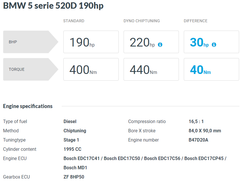 F 바디의 마지막 연식으로 B47 엔진의 기본 출력 상 리맵 데이터는 하기와 같이 출력 향상을 볼 수 있습니다.