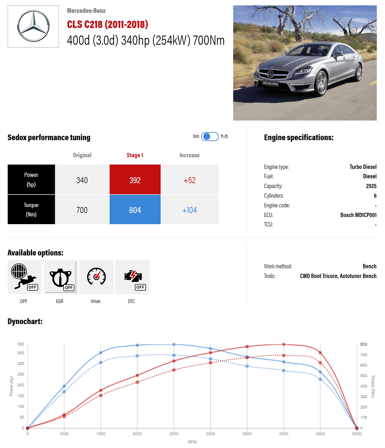 탈거한 ECU로 데이터를 추출합니다. 본 차량의 경우 3세대 C257 모델이지만 기반 데이터는 이전 세대 W218의 400d와 동일합니다. 이 차량의 데이터는 SEDOX-PERFORMANCE를 기반으로 진행합니다.