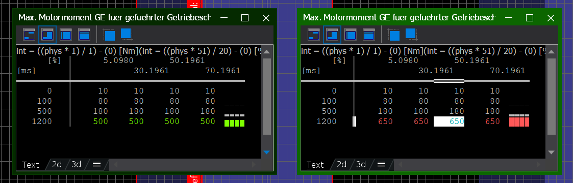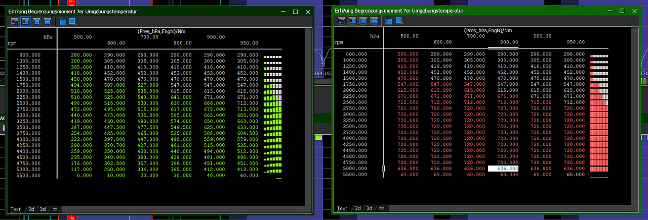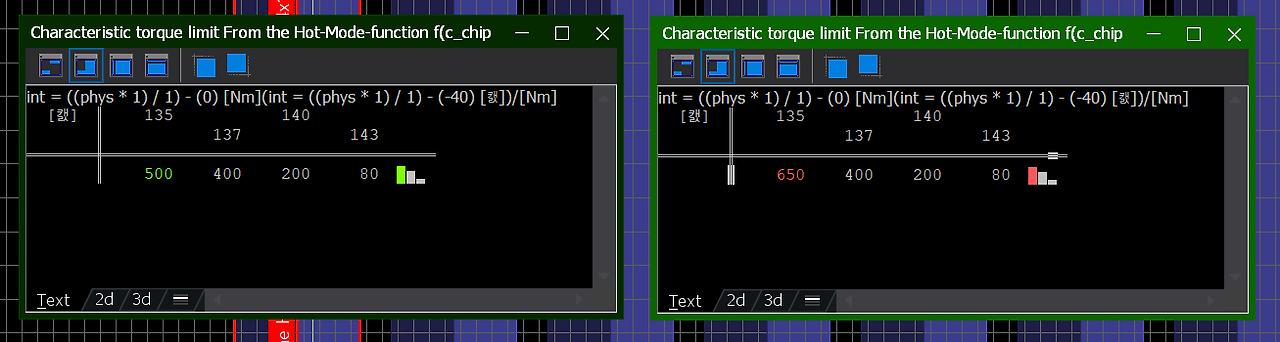 미션 맵 수정 부분 입니다. 기본 베이스인 500Nm을 셋팅치인 650Nm으로 맞춥니다. 이를 수정하지 않으면 미션 변속에 다소 꿀렁임이 발생할 수 있습니다.