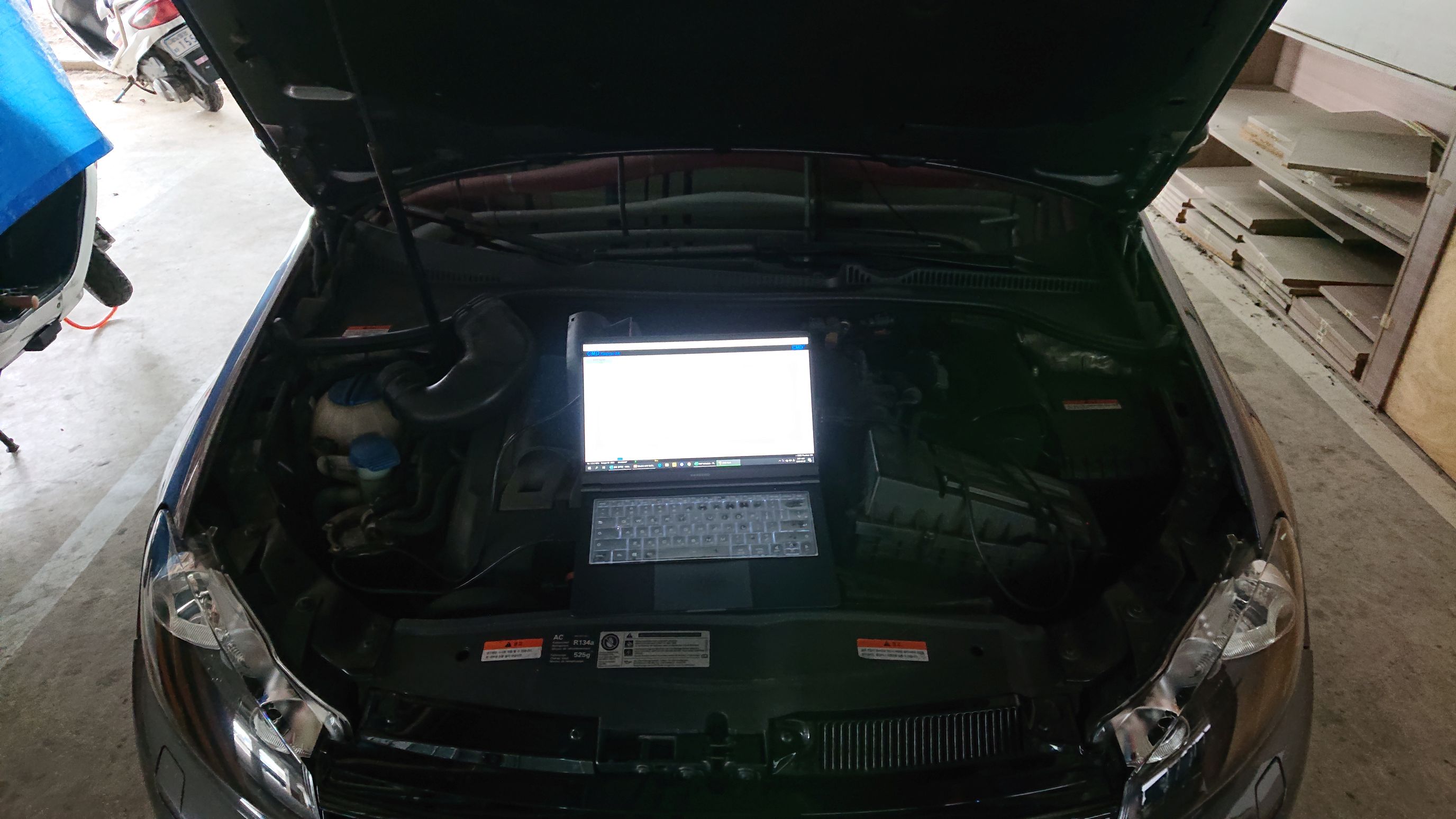 6세대 GTI 모델의 경우 ECU가 기기와 잘 맞지 않아 진행에 난관이 생기는 경우도 종종 있습니다만, 다행스럽게 최근에 업데이트한 장비가 이 내용을 잘 받아줘서 ECU 오픈작업 없이 OBD로 진행이 잘 되었습니다.