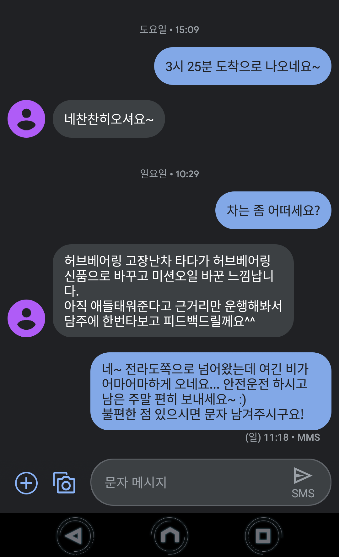 차주 분께서 예상치 못하게 길어진 작업 덕분에 시간이 촉박하신지 별도 시운전 시간을 갖진 못했습니다. 사실 저도 시간에 쫒기던 차라... 얼른 다음 목적지로 옮기고 이후에 차주 분께 연락 드려봤습니다.