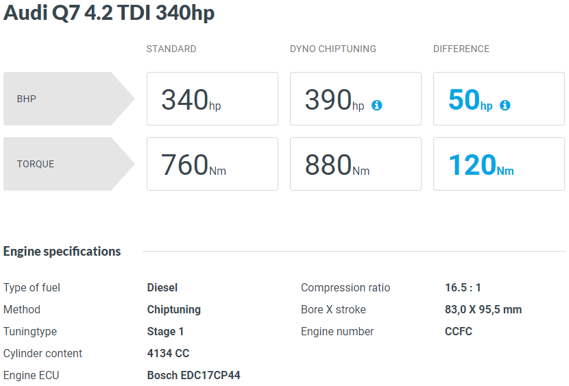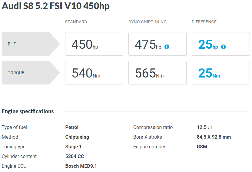 기본 340 마력 베이스 모델로 약 50마력 상승, 15% 정도의 성능 향상을 볼 수 있습니다. N/A 모델에 비해 과급기가 장착된 모든 엔진은 기본적으로 출력 향상을 여유 있게 볼 수 있습니다.