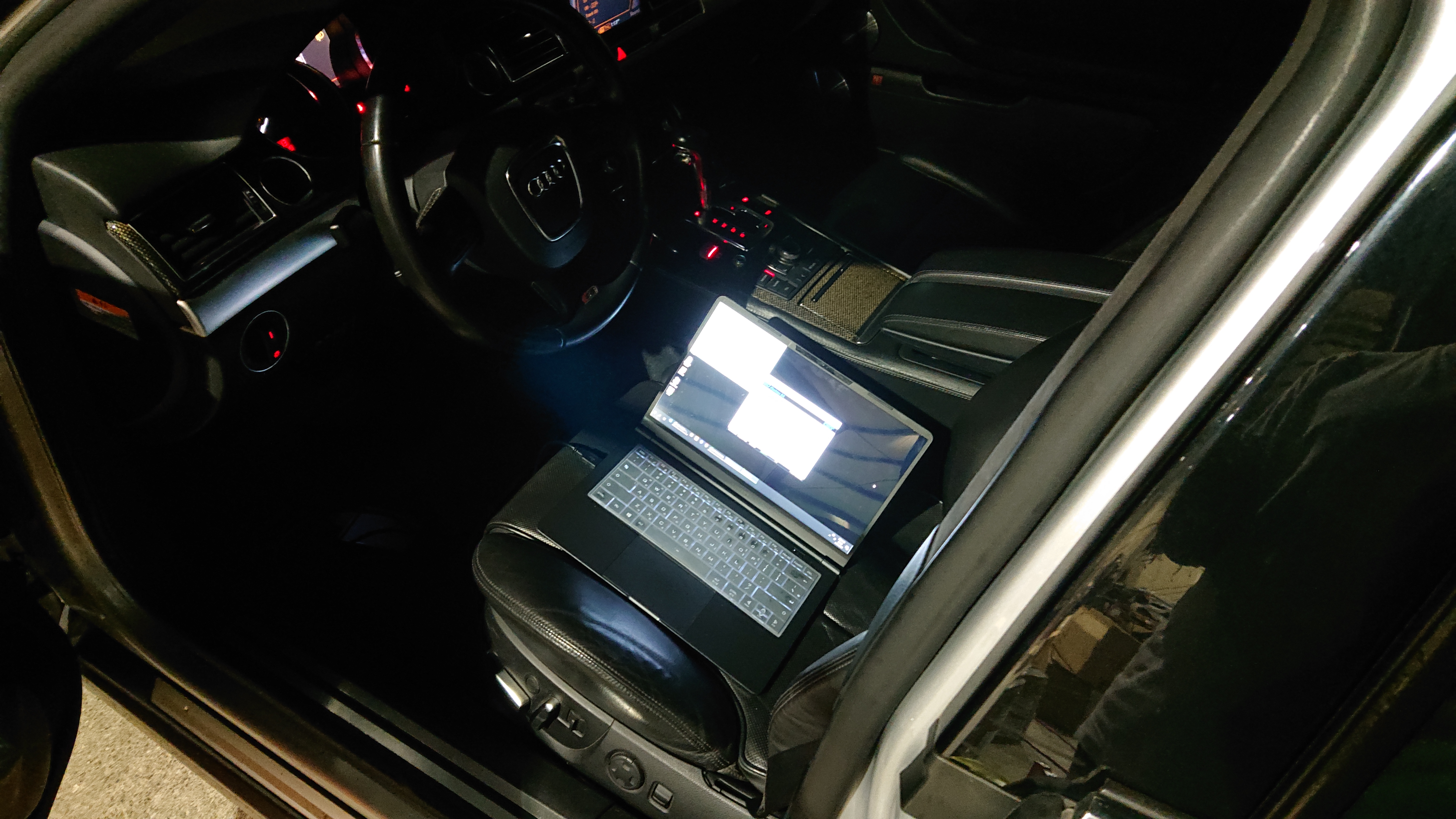 차량 내부에서 ECU 데이터 추출 작업을 진행합니다. 우선 S8 모델의 작업부터...