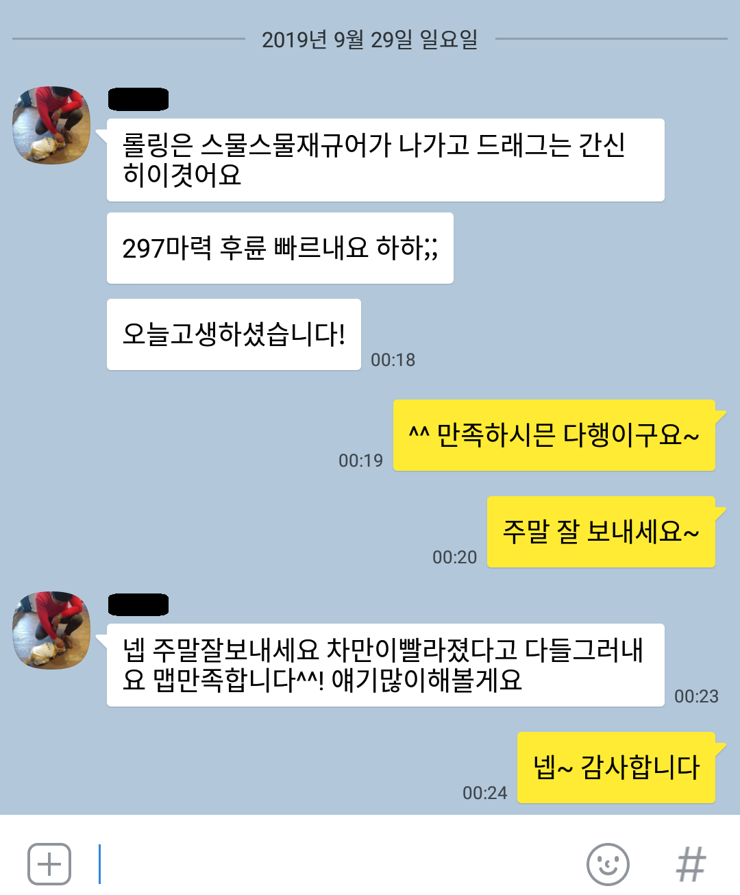 차주 분께서 상태에 어느 정도 만족하고 대전으로 돌아가셨고, 야간 늦은 시간에 피드백 주셨습니다.