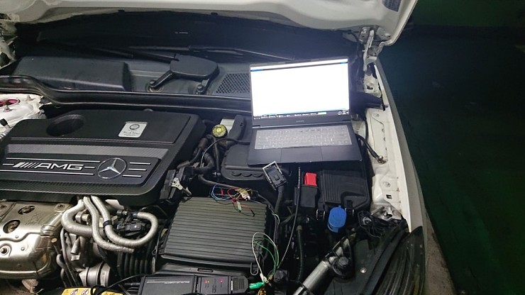 ECU 포트를 열고 장비와 PIN을 직접 열어 데이터 백업을 추가로 진행 합니다. 최근 차량은 이와 같이 ECU가 엔진룸 보이는 곳에 있어서 참 편리하긴 합니다. 상당수 구형 차종의 경우, 엔진룸 안쪽 와이퍼 아래 카울커버 내에 존재하는 경우가 많았는데, 이걸 추출하는 것만으로도 상당히 번거로움이 컸습니다.