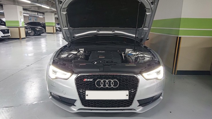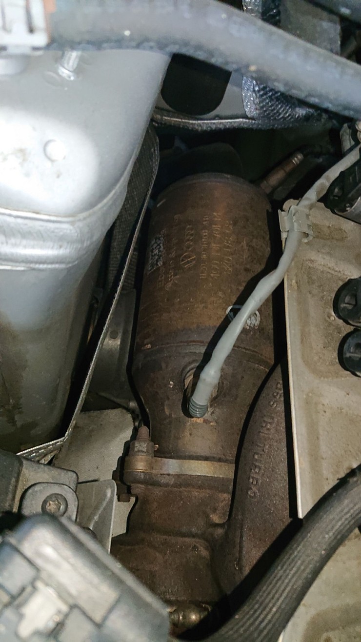 작업하면서 확인한 다운파이프 입니다. 아우디는 차종에 따라 4륜 차량을 겸하여 출시하는 경우가 많기 때문에 A5는 수직 구조로 배치되어 있으며, 그 때문에 엔진룸에서 쉽게 다운파이프를 확인할 수 있습니다. 동일한 엔진인 골프 6세대 GTI의 경우에는 위와 다르게 수평 구조로 엔진룸의 뒷쪽으로 다운파이프가 내려가므로 엔진룸에서 잘 보이지 않습니다.