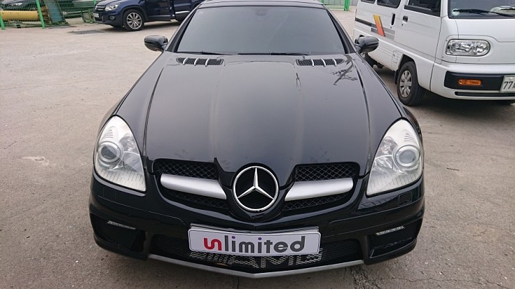 측면 및 후면에는 SLK55의 로고에 쿼드배기로 55룩 튜닝이 되어 있는 차량이며, 연식에 비해 매우 깔끔한 상태 입니다.
