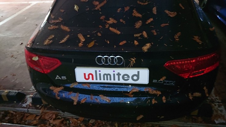 해당 아파트 단지 주차장이 조금 특이하네요. 지하주차장 같은 구조인데 가운데 및 좌우가 오픈되어 있어서 비하고 바람이 들어옵니다. 요즘 날씨와 어제 내린 비에 낙엽이 엄청 떨어져서 쌓여있네요.