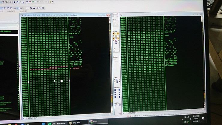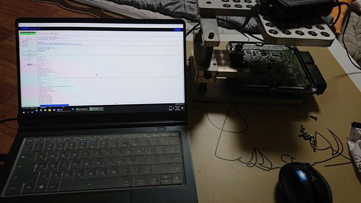 연결한 장비로 일단 데이터 추출 작업에 들어갑니다. OBD로 진행하는 것보다는 훨씬 빠르게 진행되는 장점이 있습니다. 그래도 ECU 밀봉 오픈 작업은 리스크도 있고 번거로운 점도 있습니다.