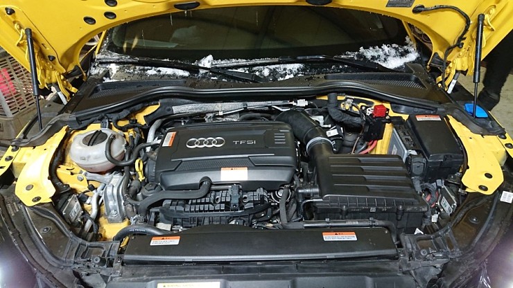 엔진룸을 열어보면 엔진 배치 면에서는 골프 7세대 GTI나 골프R과 유사한 배치로 되어있으며, 아우디는 역시 배터리를 트렁크에 탑재하여 엔진룸에 여유있는 흡기 공간이 확보되어 있습니다. 특이하게 국내 출시한 TT의 경우에는 220마력으로 셋팅이 되어 있습니다만, 보통 해외 SPEC은 230마력으로 출시되고 있습니다. 기본적으로 골프 7세대 GTI와 엔진/미션 셋팅에 차이가 없습니다. 아우디의 경우엔 세단형 차량에는 보통 S-Tronic 미션이 탑재되는 경우가 많지만, S3나 TT 계열은 여전히 DSG 미션을 채택하고 있습니다. 연비에선 S-Tronic이 유리할 수 있으나, 가벼운 차량의 300마력 이내 출력에서는 DSG가 장점이 크다고 생각하는 것이 아닐지 싶습니다.