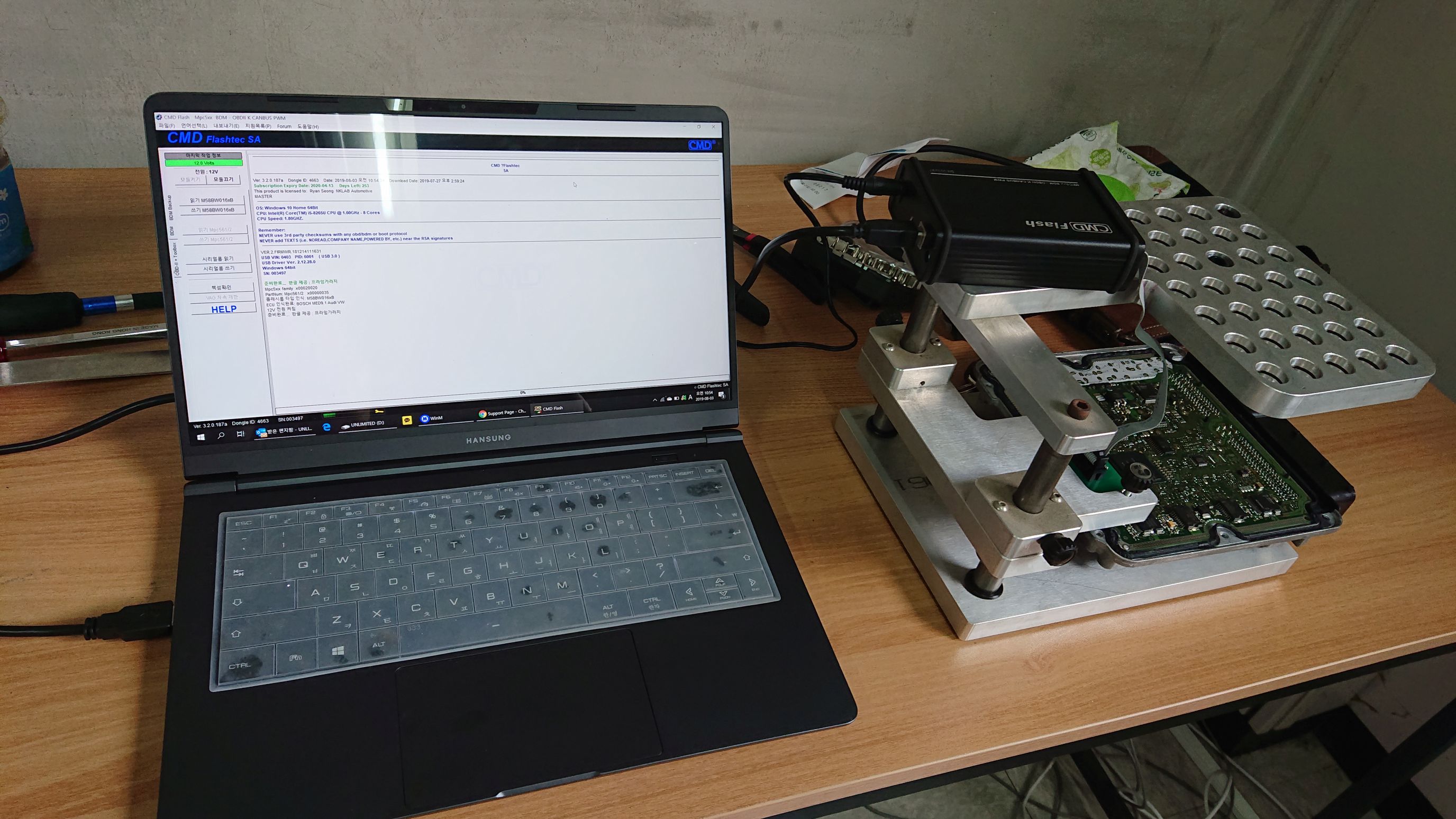 장비로 접속하니 차량의 데이터를 읽을 수 없습니다. 어느 회사 데이터인지는 모르나 데이터를 접근할 수 없도록 LOCK을 걸어둔 상태 입니다. 이럴 경우 ECU를 추출해서 직접 작업을 합니다.